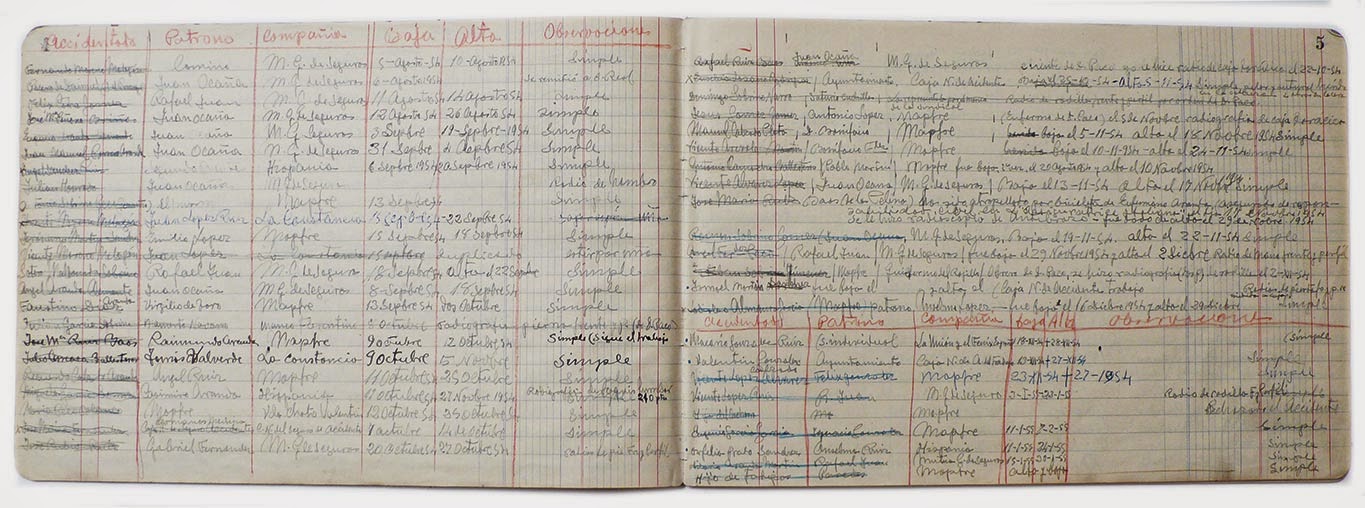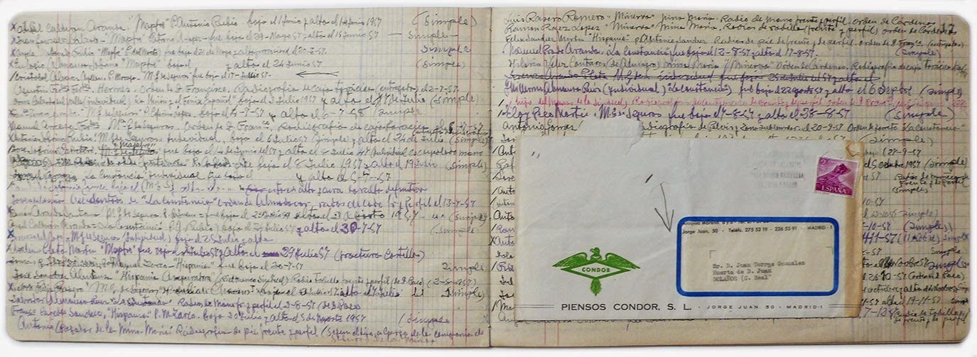 Otro cuaderno del abuelo Juan, en este caso es un cuaderno de contabilidad dedicado a llevar una lista de accidentados, con el nombre de su patrón, compañía de seguros y fechas de baja y alta. El cuaderno fue comprado en la papelería y librería Lérida de Ciudad Real, tiene ochenta páginas y contiene algunos papeles entre sus páginas como el papel de sus recetas, con la curiosidad del número de teléfono: el 23, y una carta dirigida a él cuya dirección es Huerta de D. Juan.