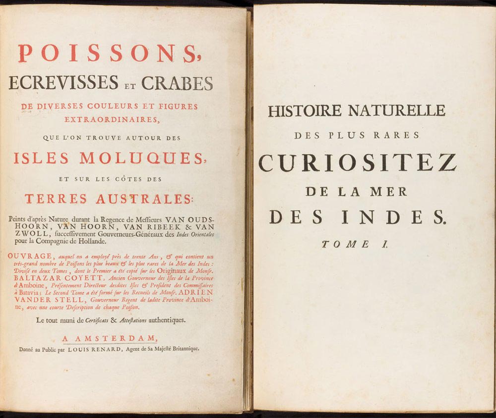En 1719, en Amsterdam. se publicó por primera vez el libro Peces, cangrejos y cangrejos de diversos colores y de forma extraordinaria, que se encuentran alrededor de las islas de las Molucas y en las costas de las tierras australes, históricamente importante por ser el trabajo más antiguo conocido de peces producidos en color. Esta edición de Renard solo tenía 100 ejemplares y ahora es extremadamente raro. La segunda edición apareció en 1754 también en Amsterdam. Aunque menos raro que la primera edición, solo se encontraron treinta y cuatro copias de esta edición existente a nivel internacional. El aquí mostrado se encuentra en la Biblioteca Universitaria de Glasgow y es en realidad un híbrido de las dos ediciones. Una tercera edición fue publicada en 1782 por la casa de Abraham von Padenburg y Willem Holtrop. Una vez más, las copias de este libro son extremadamente raras, probablemente debido a que su publicación nunca se completó.