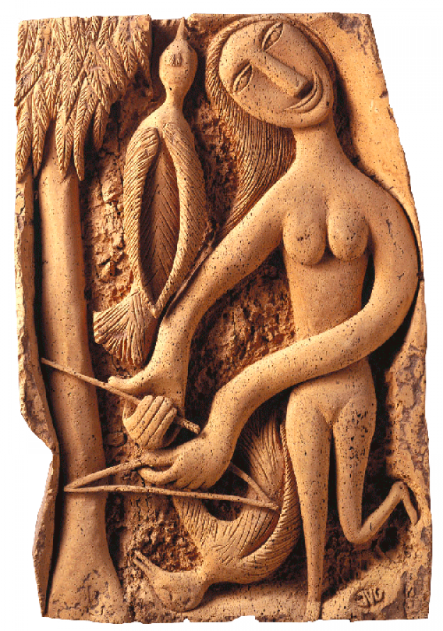 Tallador de corcho con experiencia, fue apreciado por la viveza de su grano, su rica textura, su amplia gama de tonalidades, y la forma en que se resiste a las herramientas a fin de alentar impresionantes sorpresas. A menudo, era la forma del trozo de corcho lo que inspiró ciertas figuras o motivos con tintes mitológicos, religiosos o míticos. Aunque esbozaba sus composiciones en tiza, se dejaba llevar por el azar al tallar la pieza. Disfrutó de extraer todo el potencial expresivo del corcho con la más simple de las herramientas: una fina navaja de bolsillo y papel de lija. Sacó las mil formas en que este material podría modular la luz, absorberla, hacerla vibrar o reflejarla.