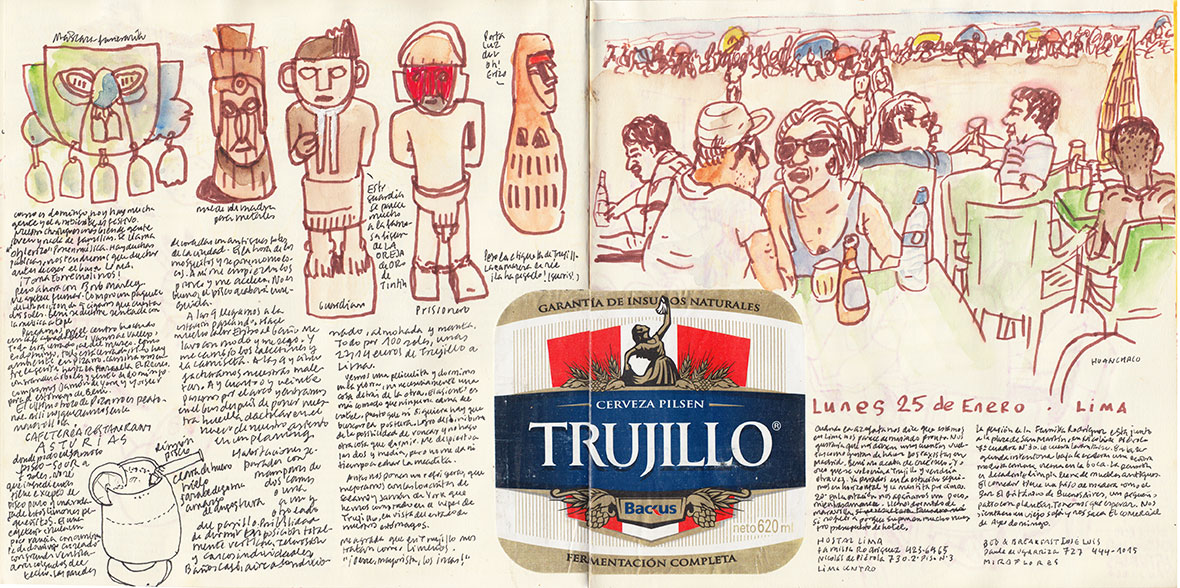 Las playas de Huanchaco me recuerdan el Torremolinos que conocí de niño. Playas a tope. Chicos posando con gafas de sol, Ligoteo, chiringuitos ballenato, souvenirs de conchas para poner encima de la tele, helados derritiéndose, siesta en la mínima sombra. Buscamos un restaurante fresco y tranquilo. Arroz con mariscos, más risoto que paella, más marisco que arroz. Cerveza Trujillo. Después paseamos por el pueblo y combi de vuelta. ¡Oerre mayorista los incas! grita la chica desde la puerta. Los Incas, Plaza de Armas, Pizarro. Descanso en la Cafetería Asturias. Por fin un pisco sour. Pisco, limón, clara de huevo, jarabe de goma, hielo y amargo de angostura nos desvela el camarero. Lo mejor que entra en barriga.