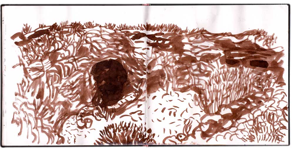 Hoy toca baño. Puerto del Carmen. Buscamos una cala pequeña, poco concurrida, entre rocas. Entre Los Pocillos y Playa Grande. Agua transparente. Me entretengo dibujando a la vecina, que se ha muerto de sol. Baño dibujo baño bocatas baño hasta la hora de entrada de Miguel Ángel. Después un café en el porche-balcón de Don Emiliano, junto al filo del Pico de la Aceituna. Muy a gusto con el relente mirando al fondo la Montaña Roja y una señora que sale a su minihuerto con el mandil, el pañolico y las gafas de sol. La camarera me dice como se llama cada cosa. ¿Y esto te lo acabas de dibujar ahora mismo?
