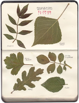 Me despiertan los perros aullando por la noche. Me levanto temprano, caliento el café y la leche. Bajamos nuevamente al barranco hasta San Miguel. Delante, ese flipante paisaje alpino por cuyos valles vinimos ayer. Terrible subida a Santa Marina. Adelantamos a una peregrina finesa, este camino apenas si se usa. Cuando paro a tomar notas, vuelve a pillarme. En el bosque aparece como novedad el señor castaño. Cuando la luz logra penetrar, aparecen las hermosas dedaleras con sus flores magenta. Descanso en Los Llanos, pueblo con lavadero público y puerta de entrada, bajo el gran tejo frente a la iglesia parroquial de Santiago. El descenso suave hasta el río Pajares, resulta muy agradable, por una carretera sin tráfico y en obras hasta el Puente de los Fierros, donde hay una estación de tren. El ascenso empieza en una valla con un gran ciruelo y luego una senda entred hayas y avellanos, junto al precipicio, hasta Fresnedo. Antes de llegar, charlo con un paisano que ordeña con dificultad una vaca que, según cuenta, nació con cesárea. Nos volvemos a reunir en Fresneo. Me cuentan que se cruzaron con una galopaba impresionante de caballos que subían el monte. Cargamos agua y seguimos bajo la sombra de los avellanos. Vuelvo a adelantarme para dibujar la ermita de San Miguel (Samiguel d'Eros), cuya imagen de madera policromada ha desaparecido. Bajamos por los montes arbolados de Costumiz, subimos los de Fueyos y Turiel, y más montaña rusa hasta Erías es un pueblo bonito, con casas antiguas de piedra y madera. Pasamos entre un viejo hórreo de madera y una casona de piedra con un establo semicircular. Una señora me dice que estamos a poco más de dos kilómetros de Campomanes. Al que nos acercamos por una cuesta dura de hormigón que enseguida se rebaja y luego descendiendo por un túnel vegetal de tal pendiente que destroza las piernas.