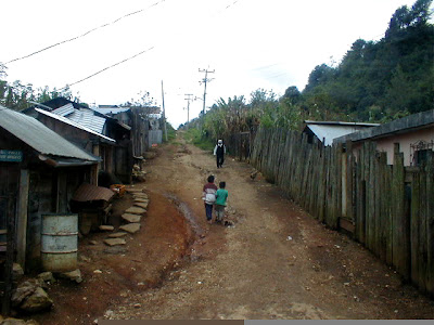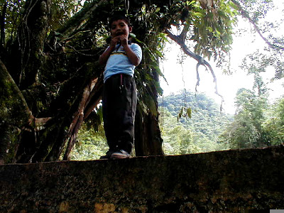 Paisaje montañoso entre lluvia y bruma. Pequeños poblados de casas de madera con tejados de uralita o chapa ondulada. Alguna iglesia chiquita. Pendientes terribles. Niños trabajando. Alguno espera todo el día en una caseta a que alguien le compre fruta. Maíz. Caballos, gallinas, pavos, chanchos negros atados. Niños negros y descalzos, con machetes cortan hierba, cortan árboles, hacen leña. Las niñas venden en las paradas, sonríen a gente como yo.