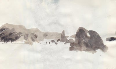 Pasamos la tarde en la playa de la Albufereta, una playa pequeña y encajonada, muy agradable con sus palmeras en la arena. Descasamos en sus sombras mientras la dibujo.