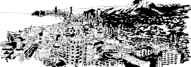 Acabamos la noche en la terraza del Orient Express, en Doctor Gadea, charlando con su simpática camarera de Guayaquil, que gusta de dibujar acuarelas pero no acaba de encontrar el papel ideal y me dice que puedo comprar un cuaderno barato, se me está acabando, en un Tiger que hay en la Plaza de los Luceros, sí esa de la fuente de los caballos como ninots. Yo le recomiendo que dibuje todos los días algo, que lleve un cuaderno pequeño que no le dé pereza sacar. Con la práctica aprenderás, y cada vez serás más rápida y te gustará más lo que haces, le comento como un viejo maestro a su pequeño saltamontes.