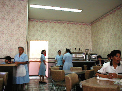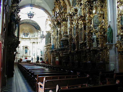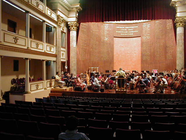 Hacemos un recorrido paseando, que arriba se muestra, a partir de la Plaza de la Constitución, una vez desayunados en la Cafetería Bisquets, pegada a la Posada de la Academia, en Pino Suárez. Esta cafetería es una casa colonial con un patio central con fuente y fotos de María Félix, Cantinflas, Jorge Negrete, Pedro Almendáriz... y también Los Beatles. San Agustín, con claustro modélico del barroco mejicano del XVIII y museo de arte. La Casa de la Marquesa, hoy hotel, barroca, con patio cubierto con las paredes pintadas. La Mota, Santa Clara. El Teatro de la República, construído en 1852, fue escenario del consejo de guerra a Maximiliano I y dos de sus generales, donde se les condenó a muerte; y en 1917 fue promulgada la Constitución. Nos colamos y nos dejan disfrutar en su interior un delicioso ensayo de la Orquesta Filarmónica.