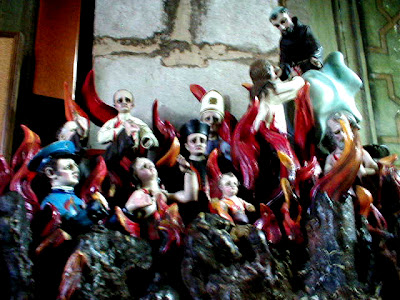 Volvemos a casa pasando por Santa Rosa de Viterbo, con un imponente órgano, en la Plaza de Mariano de las Casas. Santo Domingo y Plaza de la Constitución. Después viajamos cómodamente hasta la Terminal Norte de la Ciudad de México viendo una peli. Nos dan unos bocadillos y bebida. Los asientos están tan separados que puede uno tumbarse apoyando las piernas en una tabla. En metro vamos hasta casa de Javier, el noviete de Ana, y luego vemos la peli Frida. Ya en la cama, sueño que Frida es una oruga gigante y dolorida que se mueve arrastrándose, como una cadena de montañas, en círculo rodeando millones y millones de casitas de colores, como las de Guanajuato.