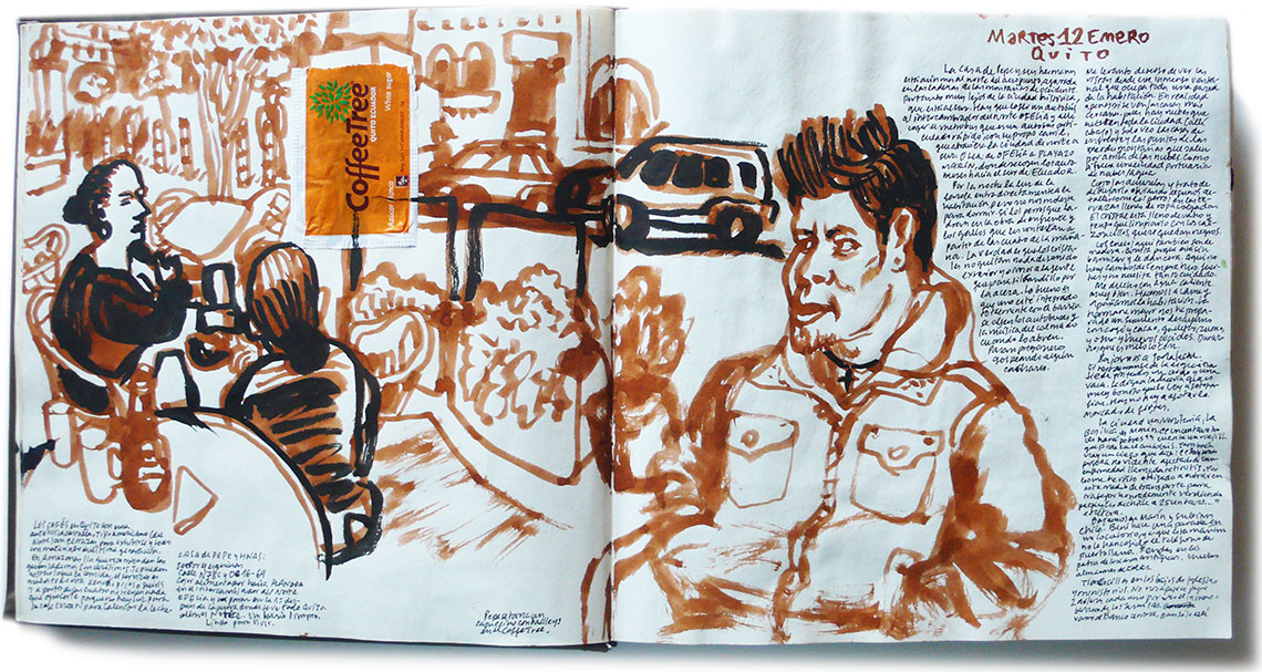 El gallo me despertó otra vez. La tienda de la esquina tiene pintada una vaca y un cerdo gris con lunares. La dueña barre. La saludamos y la felicitamos por su arte. Hoy paseamos sin guía local. Vemos estupendas fotos de los quilombolas de Brasil de André Cypriano y mogollón de cuadros de Guayasamin. Comemos en un mercado artesano donde se hacen a mano barbacoas, cocinas, jaulas, ropa y comida. Estamos fascinados con las señoras mayores. Respetuosas, impolutas, colaboradoras, sensatas... deliciosas. Ellas nos hacen hoy un pescado con arroz y frijoles con un poquito de ají. Rico, rico. Hoy bebo cerveza.