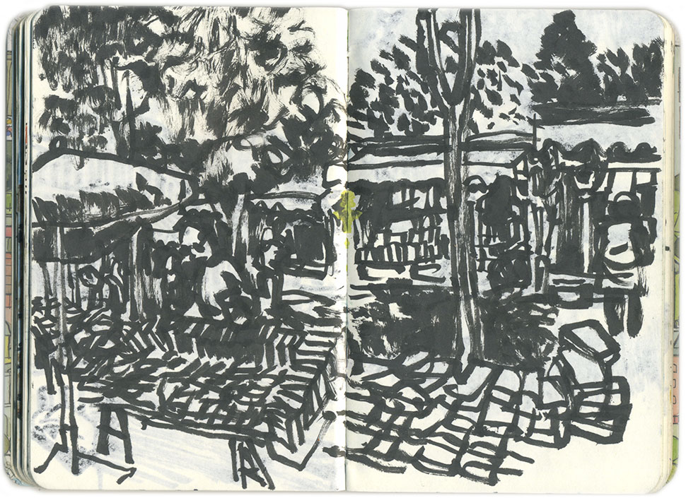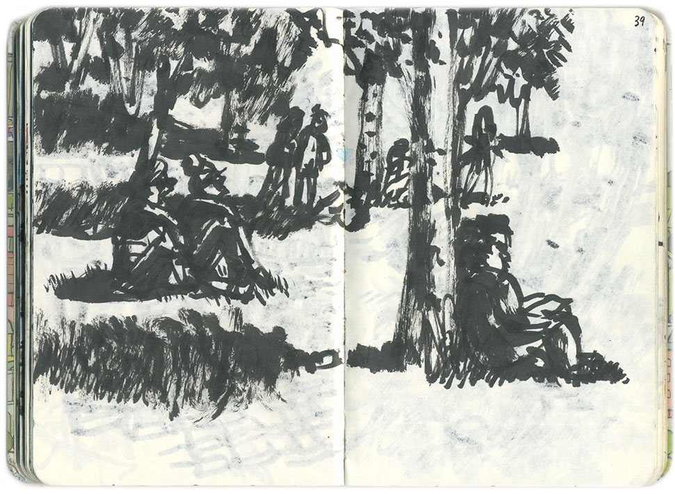 En el Retiro, cerca de la Puerta de O'Donnell, en la orilla de un pequeño estanque con patos y palomas, hay dos viejos ejemplares. De uno de ellos corresponde el dibujo y la rama fotografiada.