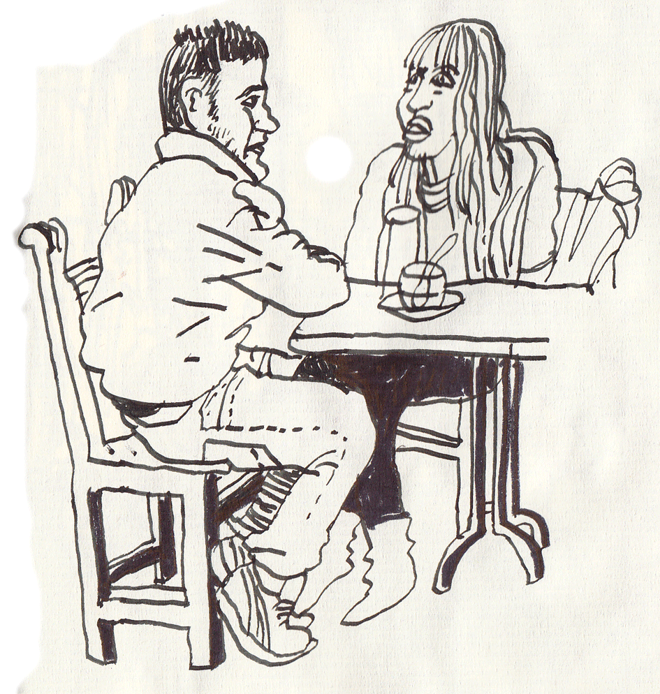 Se pone a llover y entramos en un mesón taurino lleno de fotos de toreros. Bastante incómodo si no fuera porque está lleno de parroquianos como esta parejita.