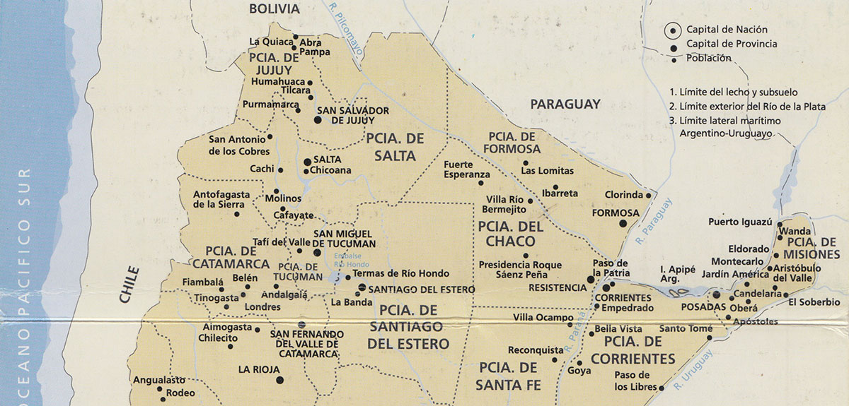 Según bajamos de altitud y en el mapa, las montañas se van cubriendo de vegetación y la vega casi selvática (bonito de verdad!), la carretera baja en zigzag, hasta que llegamos a San Salvador de Jujuy,capital de provincia. En la terminal, la gente de las compañías, bastante asquerosa, no nos da norte para acercarnos a Asunción. Finalmente, encontramos a nuestro salvador en la oficina de información turística. Un eficiente funcionario con un estupendo archivo de planos, destinos y horarios de las compañías. Por él nos enteramos que para esa ruta hay que ir a General Güemes, que es como un nudo de carreteras y luego coger la ruta hacia Resistencia o Corrientes (separados por el río Paraná) que están en la frontera de Paraguay. Dejamos las cosas en un hostal cutre y nos recorremos la ciudad. Mucho comercio y mucha suciedad. Muchos coches privados y muy viejos y destartalados . Y lo mejor de Argentina: un sandwich como las chapatas que se apretaba Alfonso a media mañana con un filete de ternera, queso, huevo frito y lechuga (lo llaman lomito); una biblioteca pública preciosa, antigua y bien conservada, librerías estupendas, cafés maravillosos.