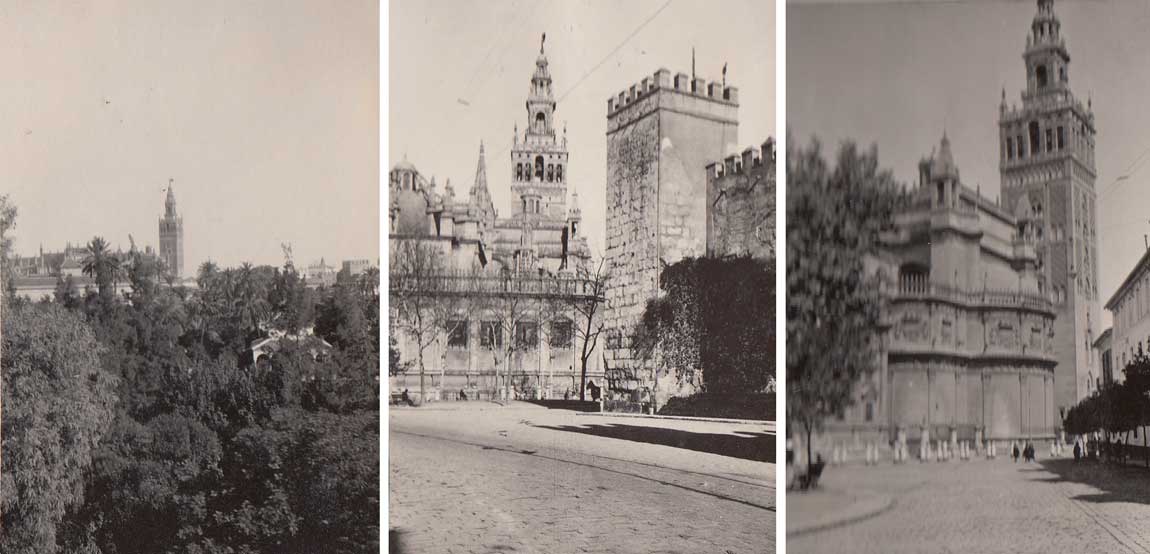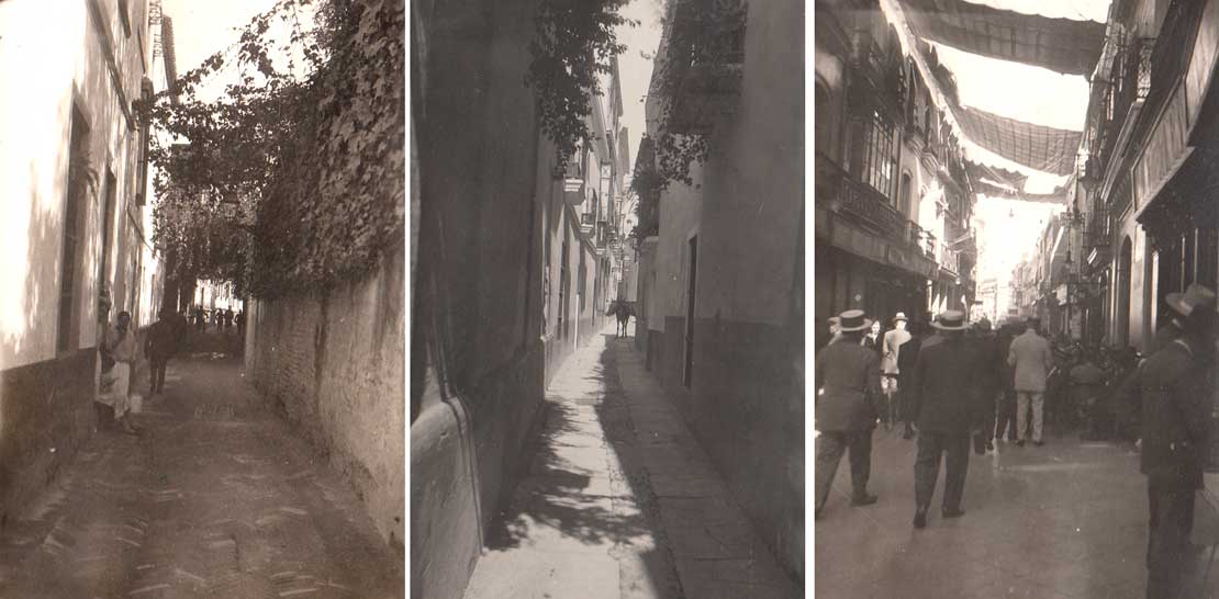 Vemos los hermosos patios de la Casa de Pilatos, con palmeras washingtonias, naranjos, buganvillas y jazmín. San Esteban, Nuestra Señora de Loreto entre santos y ángeles de madera dorada y azulejos en los frisos, y las clarisas tras las rejas. La zona de la Plaza de la Alfalfa, donde se vendían mascotas. La Plaza de Jesús de la Pasión tras El Divino Salvador con su coqueto patio arcado con los capiteles casi a ras del suelo. El palacio de la condesa de Lebrija, hecho de rapiña.