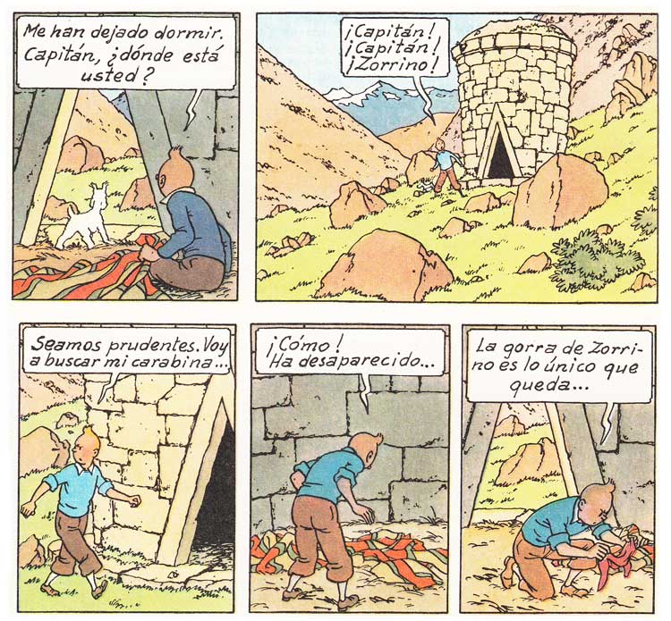 Hergué dibuja las chulpas como algún tipo de vivienda o templo habitable, y para ello inventa un tipo de puerta y sillería inca que no se corresponde con la realidad. Estos enterramientos tienen una entrada muy pequeña, para meter las momias, y no están huecos. Y no son incas, pertenecen a la cultura Kolla, que vivió en el lago Umayo antes que los incas.