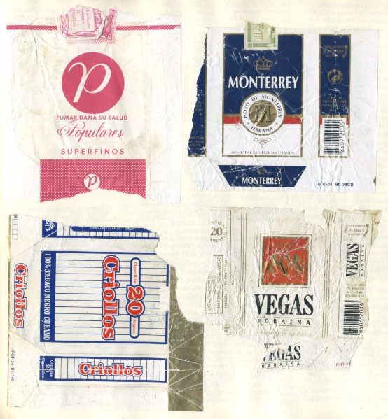 Estas cajetillas son algunos ejemplos de las marcas que existían en mi último viaje a la isla, en 2004 (en realidad prefería fumar puros Montecristo). Y aquí abajo algunas del pasado: