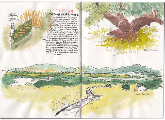 También plantas como el carrizo, la enea, el malavisco, la masiega, la verbena, la correvuela y los árboles típicos de las tablas: el taray, que aquí tiene ejemplares centenarios que cae por su propio peso y vuelven a resurgir como si fueran macetas. Impresionante y mágico el bosque de tarayes.