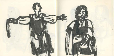 Un amigo, desempolvando estanterías, encuentra este cartel que hice para reproducir en offset rápido, lo que antes se llamaba multicopia, en 1977. Entonces representamos esta obra de Alfonso Sastre (escrita en 1955 y publicada en 1962) en que se plantea el dilema entre la lucha organizada e individual contra la dictadura, y sus consecuencias. Un drama en que, esta vez, Guillermo Tell no logra dar a la manzana, pero sí remover conciencias. Nos juntamos unos cuarenta jovenzuelos entre actores aficionados, taquilleras, acomodadores y técnicos. Tuvo cierto éxito y la representamos en varias poblaciones.