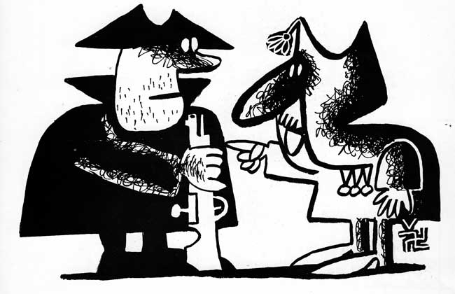 (Dibujo de Vázquez de, Sola en El general Franquísimo o la muerte civil de un militar moribundo, editorial Ruedo Ibérico 1971)